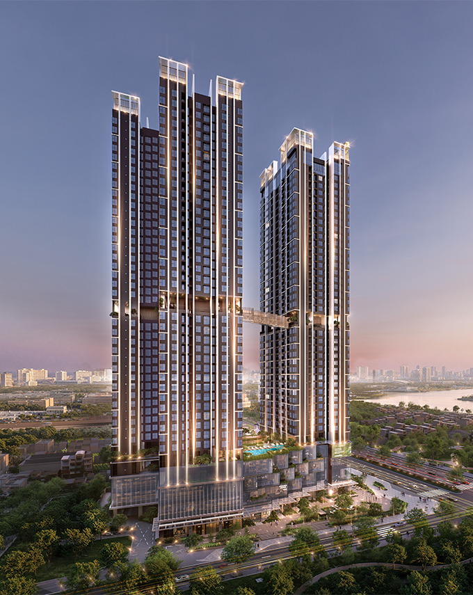 Quy mô dự án: 4 tháp, 3 hầm, 3 tầng podium. 25 tầng cao.