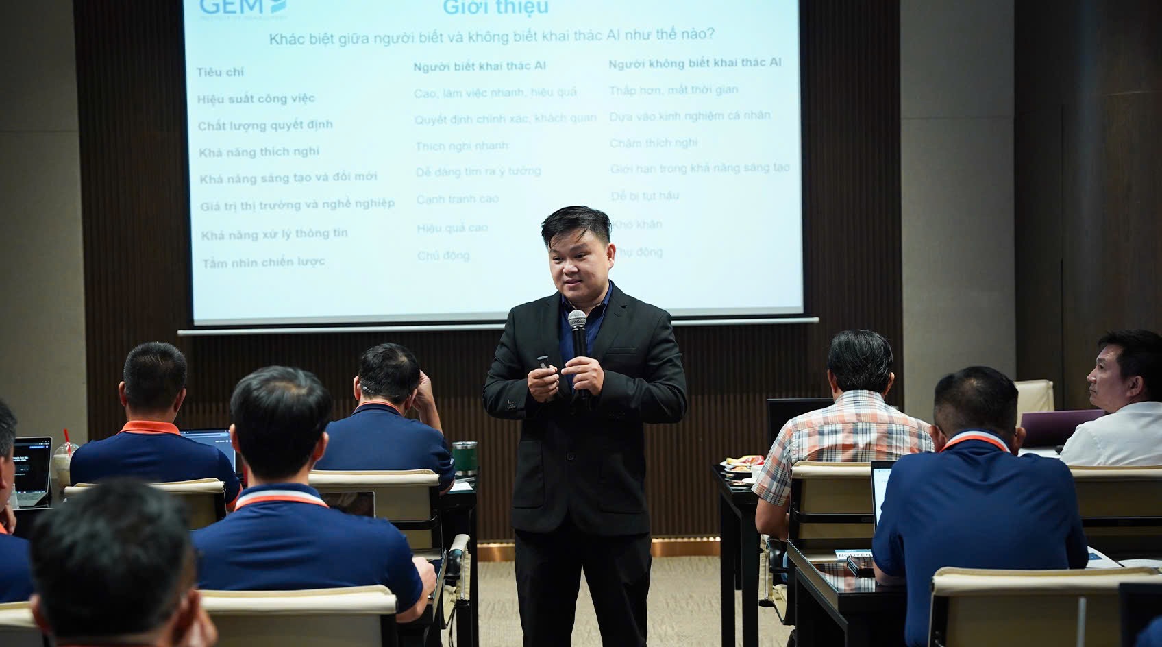 Chương trình đào tạo tập trung vào các nội dung trọng tâm như tổng quan về AI và Generative AI, phương pháp làm việc hiệu quả với các công cụ AI thông qua kỹ thuật đặt câu lệnh (prompt), cũng như cách ứng dụng AI trong các hoạt động thường nhật như tổng hợp báo cáo, phân tích thông tin, lập kế hoạch và hỗ trợ ra quyết định. Thông qua các phần chia sẻ và thực hành thực tế, học viên có cơ hội tiếp cận cách sử dụng AI như một “trợ lý số”, giúp rút ngắn thời gian xử lý công việc, tăng tốc quá trình tổng hợp dữ liệu và nâng cao hiệu quả quản lý.