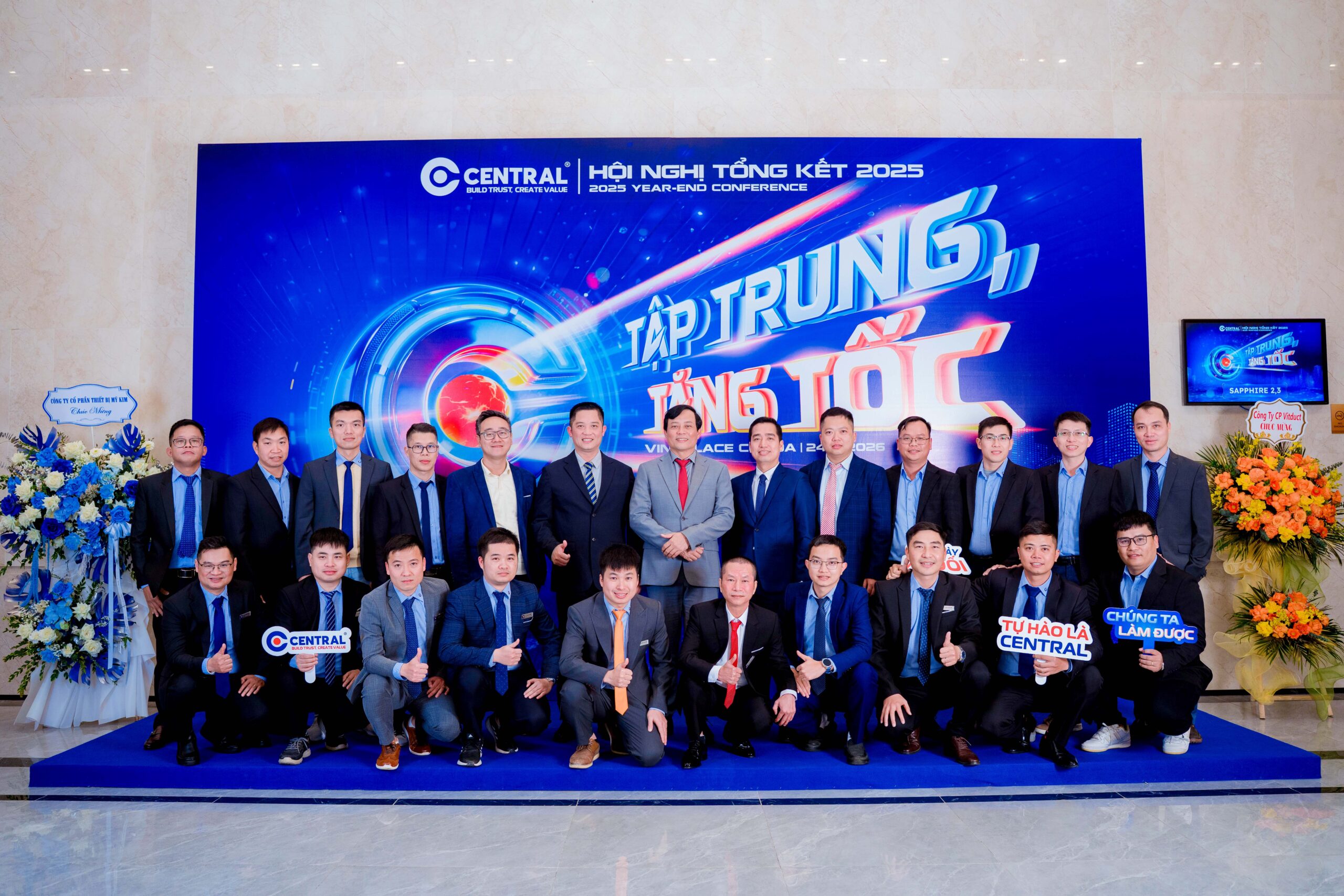 Sau dấu ấn thành công của Hội nghị Tổng kết 2025 khu vực miền Nam, vừa qua, ngày 24/01/2026, Công ty CPXD CENTRAL tiếp tục tổ chức Hội nghị Tổng kết 2025 tại miền Bắc và miền Trung, diễn ra đồng thời tại Trung tâm Triển lãm Quốc gia Vinpalace Cổ Loa Hà Nội và Novotel Đà Nẵng. Sự kiện có sự góp mặt của Ban Lãnh đạo Công ty và quy tụ hơn 600 CBNV cùng các khách mời, tạo nên không khí trang trọng và gắn kết.